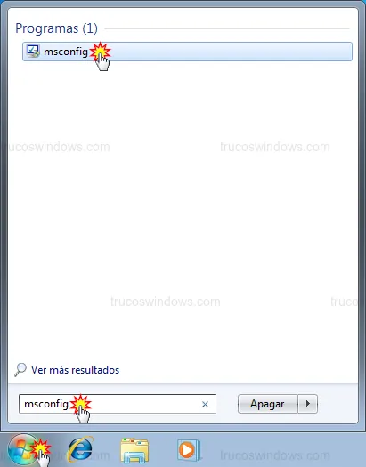- En el cuadro de búsqueda, escribe msconfig y presiona la tecla Enter.