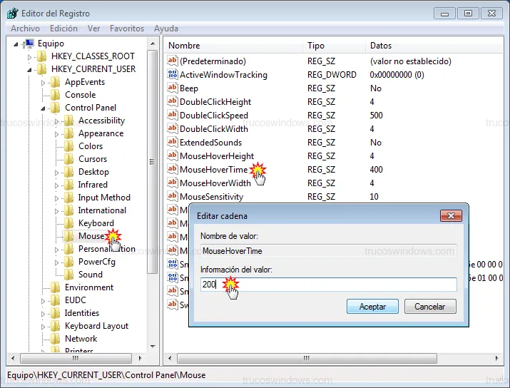 Este parámetro del registro controla el tiempo que el cursor debe permanecer inmóvil sobre un elemento para que Windows ejecute una acción de "sobrevuelo" (hover), como mostrar descripciones emergentes o las miniaturas de la barra de tareas. Ajustar este valor hará que todo el sistema se sienta mucho más ágil y reactivo.