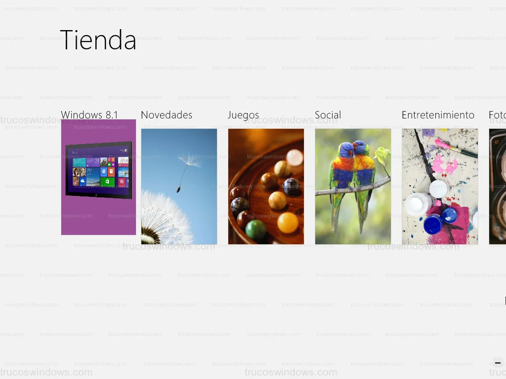 A continuación, se presentan capturas del sistema Windows 8. Estas imágenes ilustran el salto a la interfaz Metro (Modern UI) y la integración de la Windows Store, marcando el enfoque de Microsoft en los dispositivos táctiles.