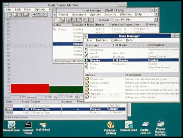 El proyecto Windows NT (nombre en código NT OS/2, luego Cairo) tenía como objetivo crear un sistema operativo empresarial de 32 bits con un diseño portable, escribiendo la mayor parte de su código en C. La primera versión, Windows NT 3.1, ofrecía la interfaz de usuario de Windows 3.1, pero bajo el nuevo y robusto kernel NT. El sistema operativo se distinguía por su soporte nativo de multiprocesamiento simétrico y la compatibilidad con arquitecturas RISC como MIPS y Alpha, crucial para los entornos de servidor de la época.